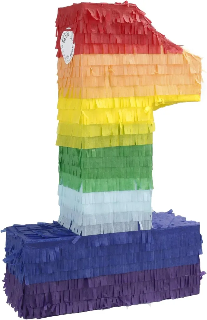 Preciosa y divertida Piñata Número 1 multicolor con la que los más pequeños se lo pasarán en grande en la fiesta de cumpleaños. Ésta piñata, igual que la gran mayoria, se puede rellenar con chuches, juguetes y/o confetti.